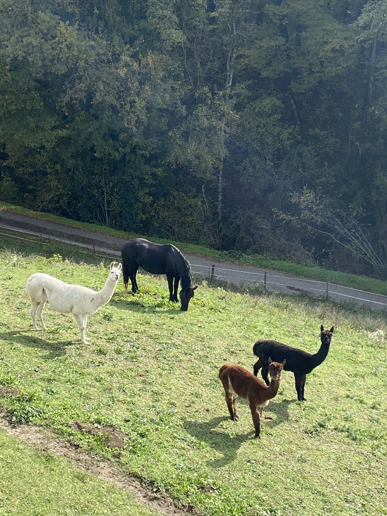 Vous pourrez donc croiser le chemin de nos chiens et chats mais aussi de nos lamas et alpagas ; chevaux et canards.